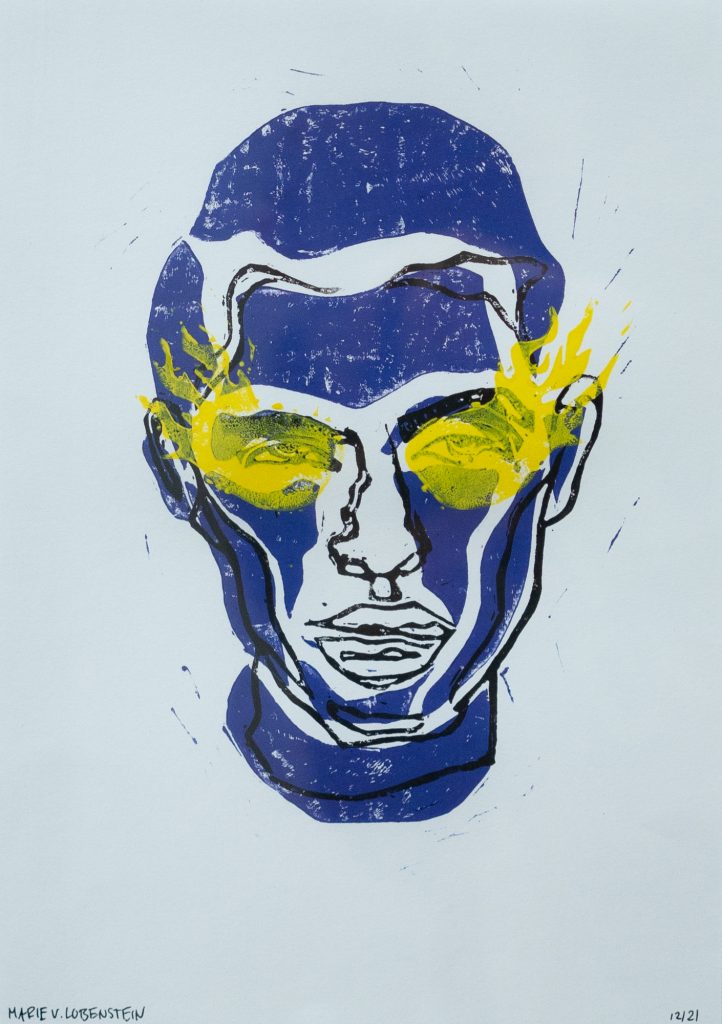 Duplikate für je 35 Euro (Ohne Rahmen)„First in Blue“ I Linoldruck A4 auf 250g Papier I